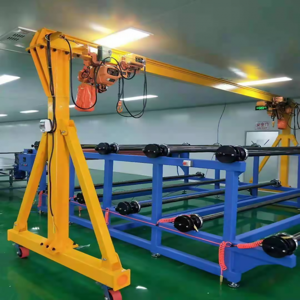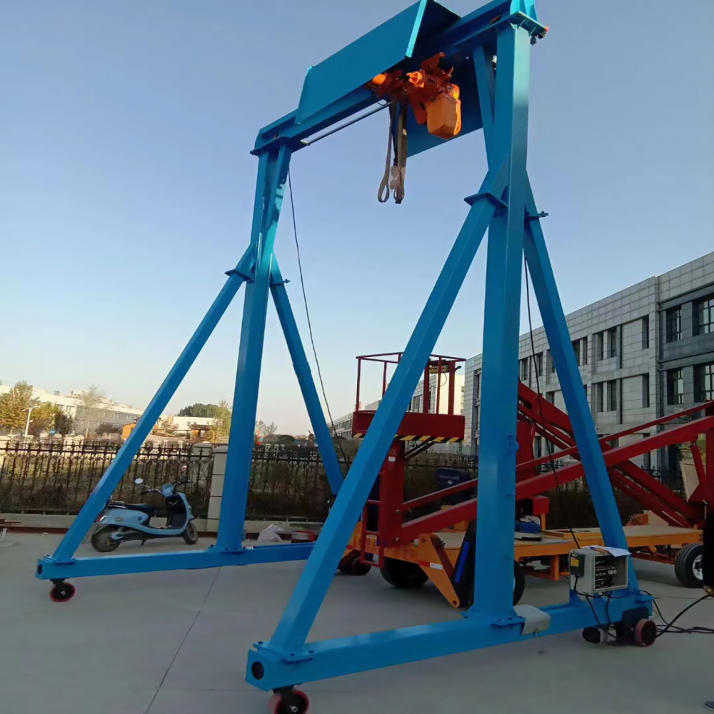 無軌龍門架是根據(jù)狹小的空間或行車運(yùn)轉(zhuǎn)不方便生產(chǎn)出來的小型起重設(shè)備,主要用于貨物搬運(yùn),倉(cāng)庫(kù)進(jìn)出貨,起吊維修,材料運(yùn)輸?shù)墓ぷ餍枰?,該龍門架褪下安裝有萬(wàn)向承重腳輪,并帶有剎車功能,可以在地面上移動(dòng),在定好位置后踩下剎車固定好龍門架,保證了龍門架的穩(wěn)定性,該龍門架主梁與支腿之間用強(qiáng)度螺絲連接,可以快速的拆卸與按裝。